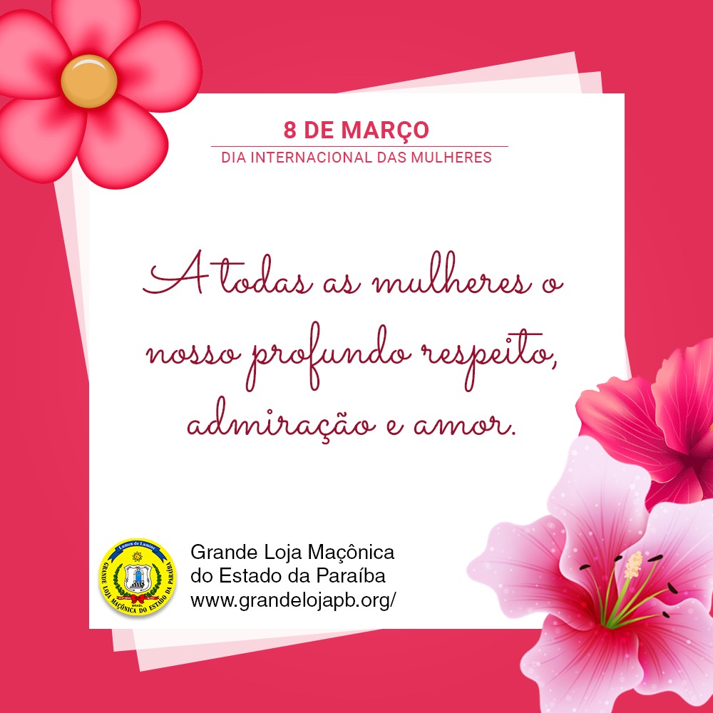 Que o Grande Arquiteto do Universo permaneça iluminando as mulheres, mantendo-as amorosas e decididas, sempre levando aos lares e às comunidades o alento divino da solidariedade e da paz.
