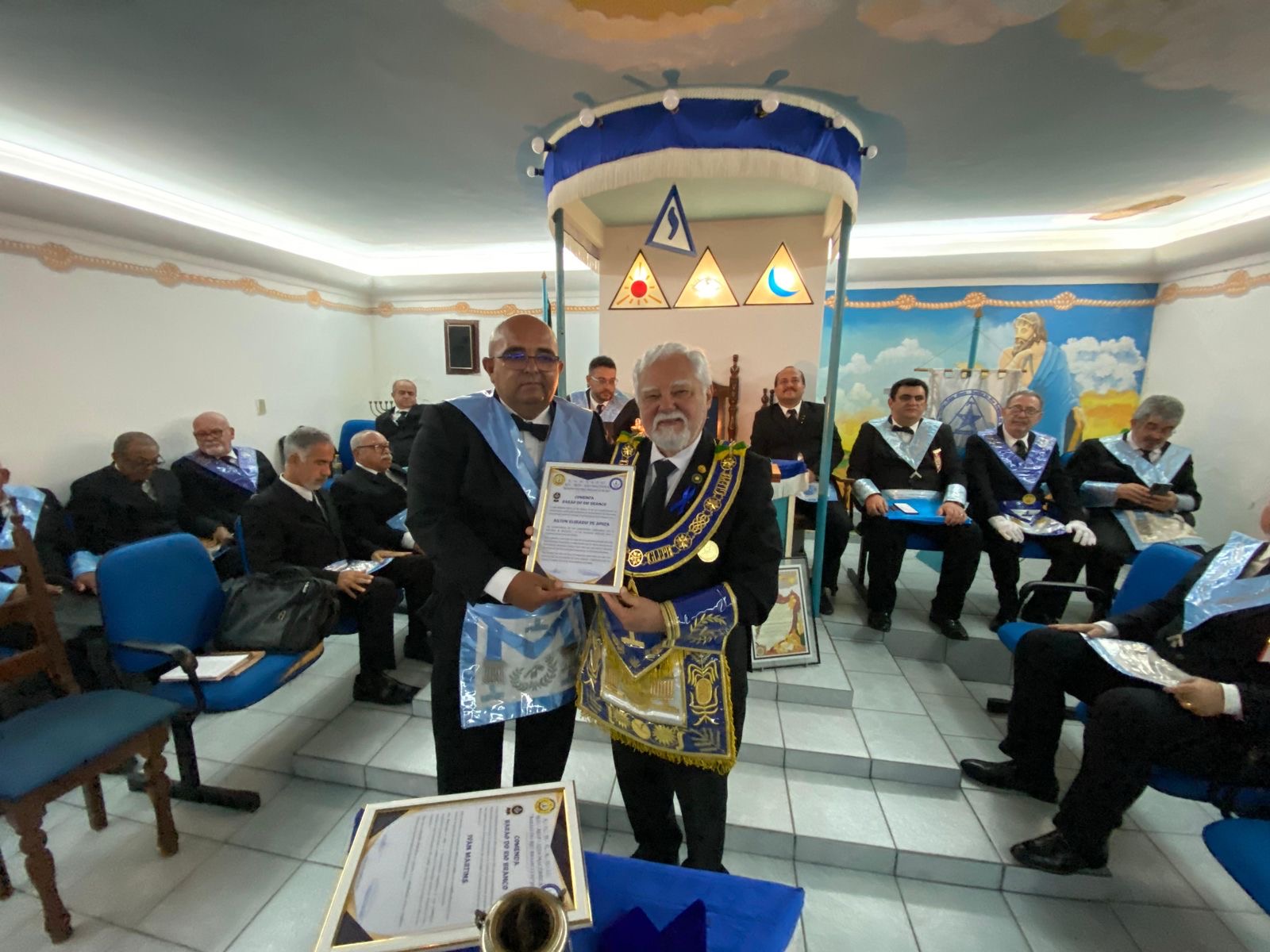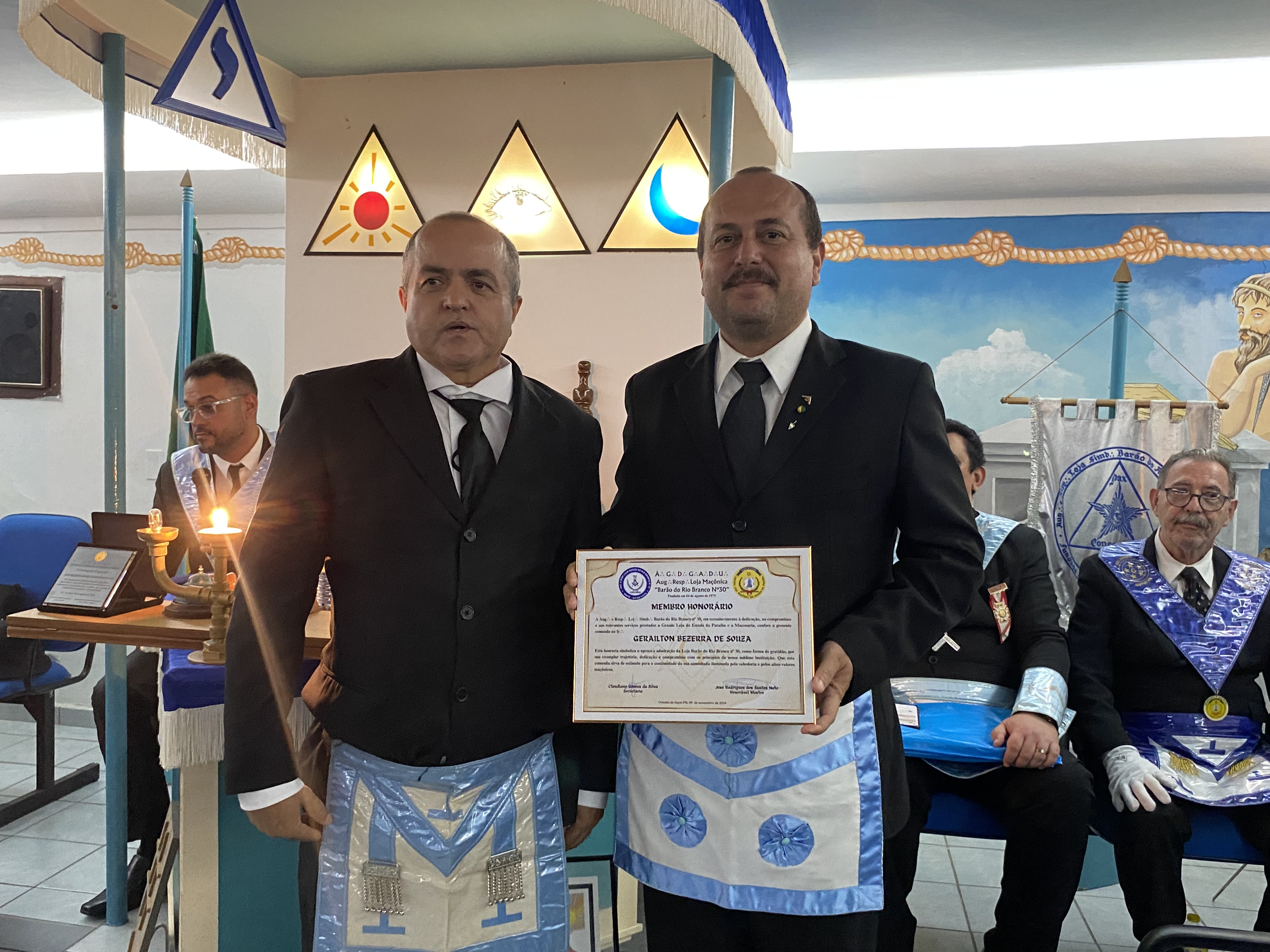 O Venerável Mestre José Cristiano concedeu aos irmãos Ivan Martins e Cláudio Brasil o título de Membro Honorário da Loja João Sales de Araújo n.36 e o Venerável Mestre Leonardo Araújo entregou também o título de Membro Honorário da Loja Tiradentes n.26 ao Venerável Mestre José Rodrigues.