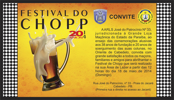 Festival de Chop da Loja José do Patrocínio n° 33 a ser realizado em 18/05/2014.