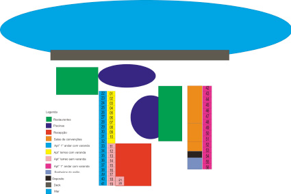 22 a 31 (1º andar com varanda + frente para a piscina central; quanto ao repouso: grande concentração de pessoas + barulhentos);