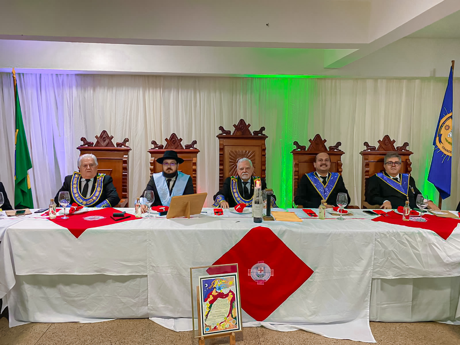 Os trabalhos de banquete foram conduzidos pelo Venerável Mestre Clidenor Jr., 1º Vigilante Radamir Lira e 2º Vigilante ad hoc Lauro Miranda, Orador Isaac Freitas e Secretário ad hoc Alexandre Mariano, além dos demais oficias da loja.