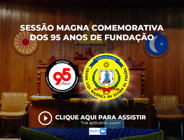 O Grão-Mestre e o Grão-Mestre Adjunto da Grande Loja Maçônica do Estado da Paraíba, têm a honra de convidar os Ilustres Irmãos para a Sessão Magna Comemorativa dos 95 Anos de Fundação da Instituição, às 20 horas do dia 26 de agosto de 2022.