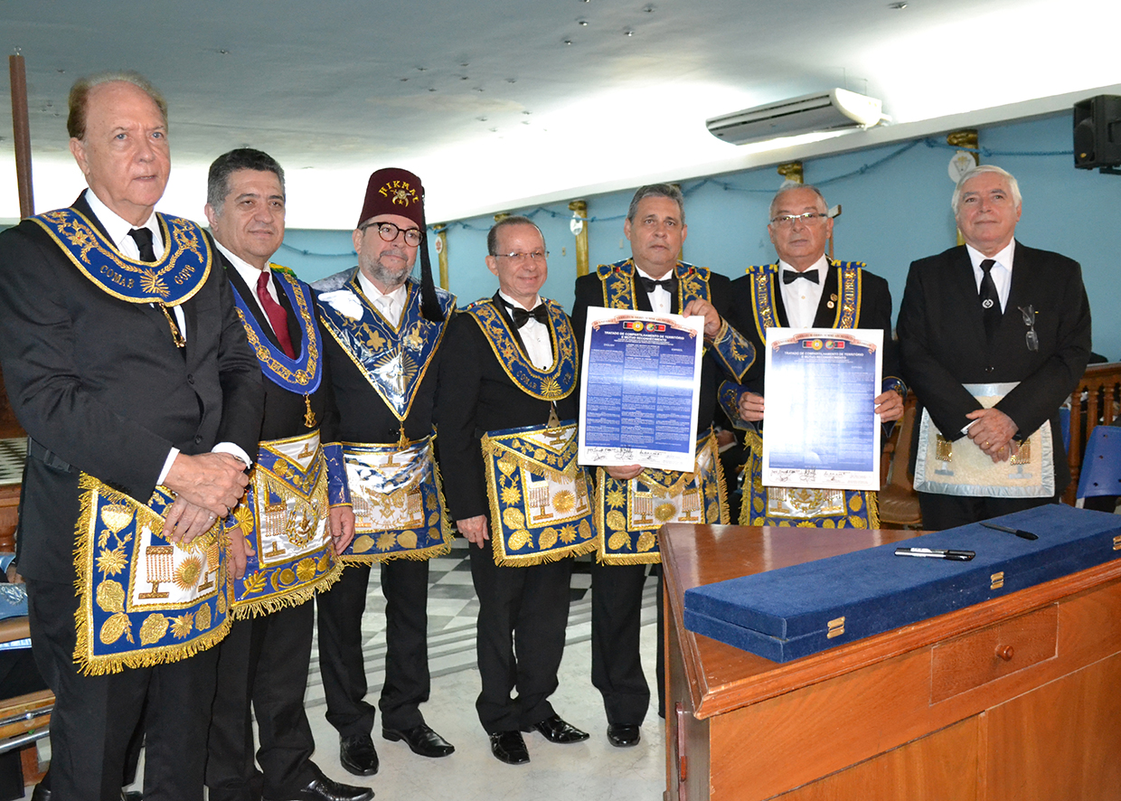 Solenidade de assinatura de Tratados Interpotenciais com os Grandes Orientes Estaduais de Santa Catarina, Bahia, Paraíba, Rio Grande do Norte e Maranhão.
